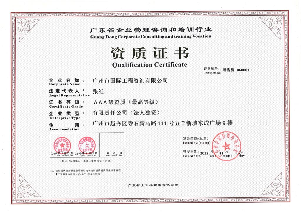 廣東省企業(yè)管理咨詢和培訓行業(yè)AAA級資質