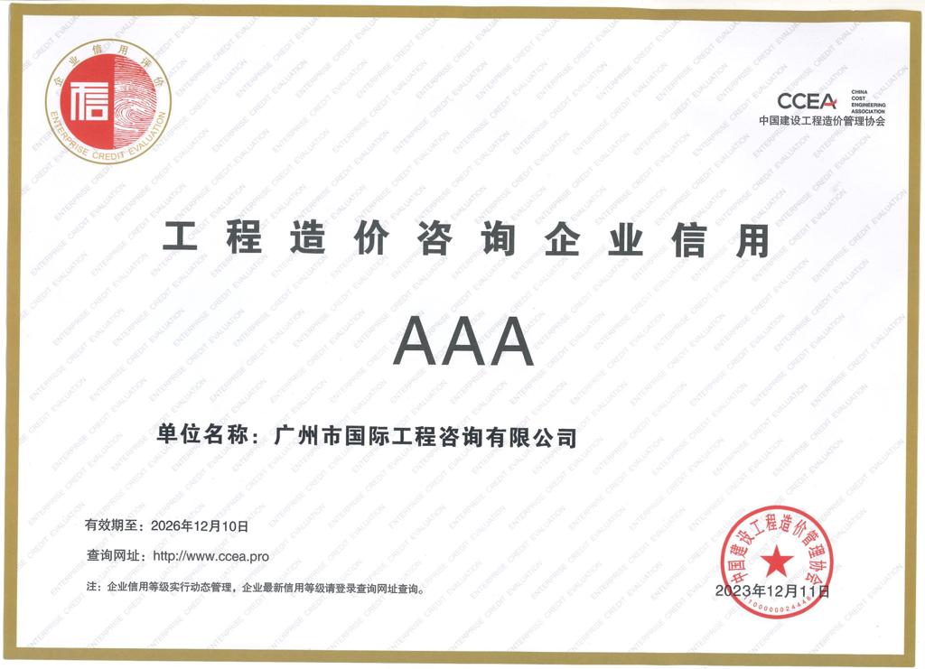中國(guó)建設工(gōng)程造價管理協會(huì)企業(yè)信用等級AAA級...