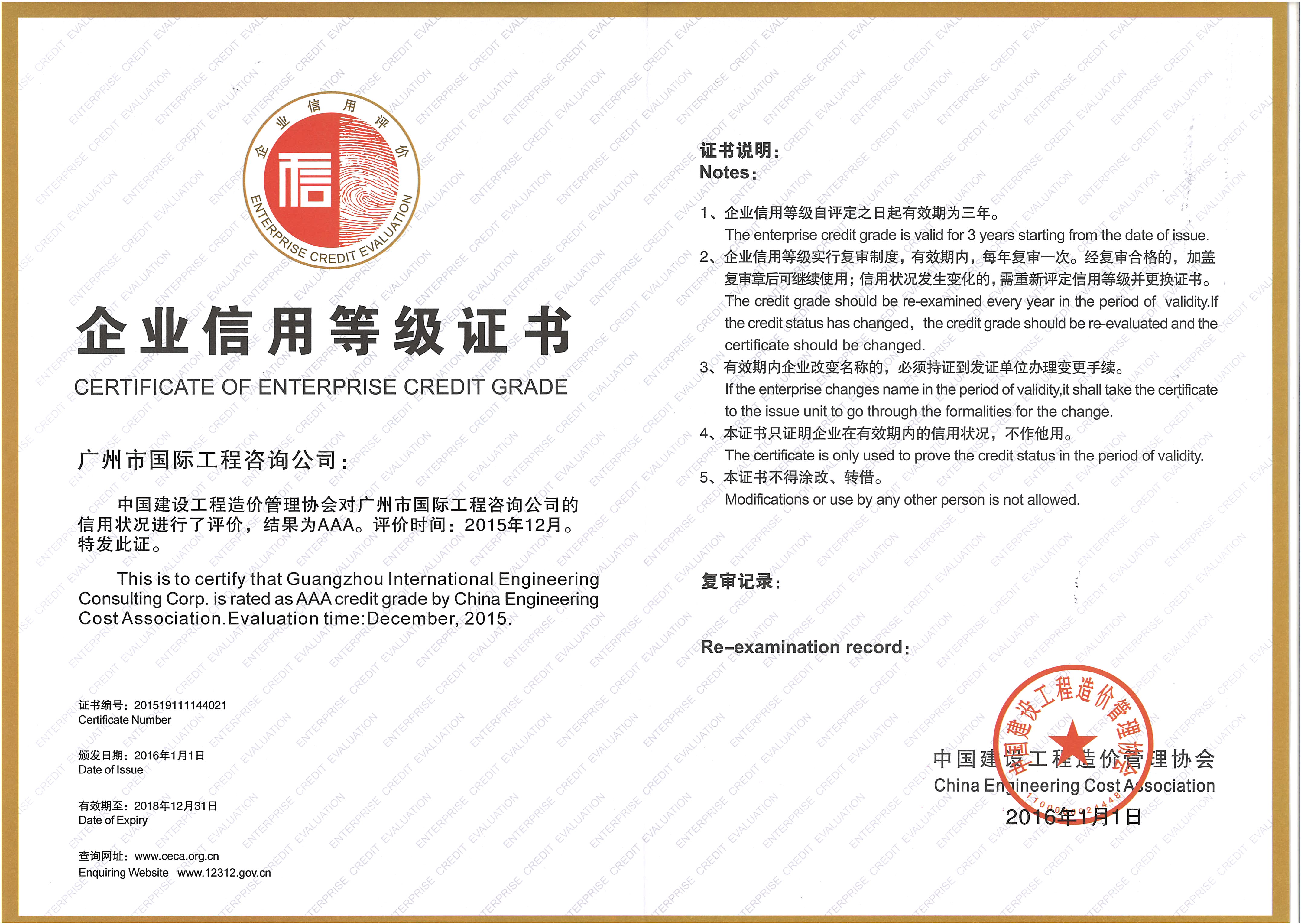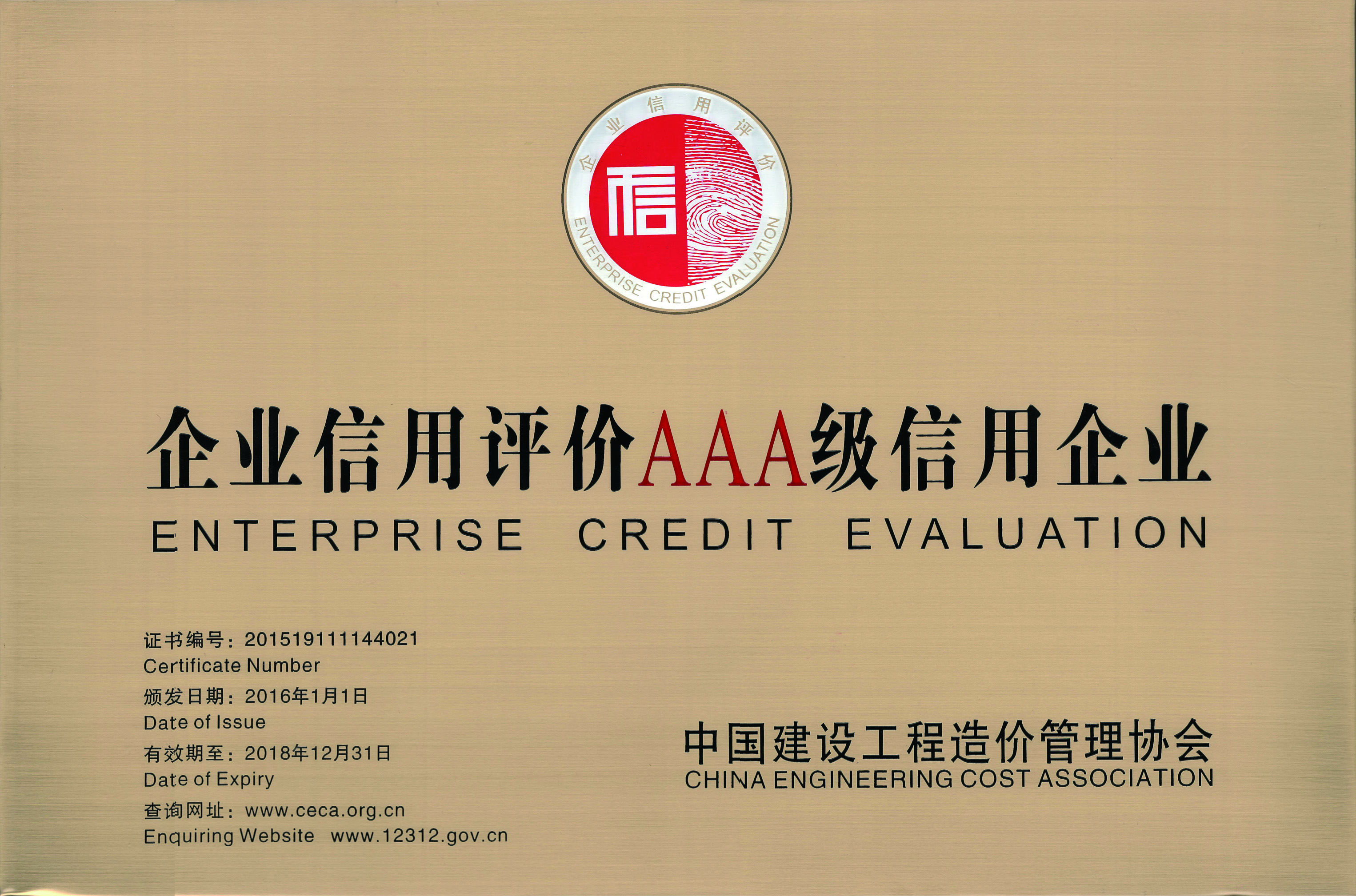 2016企業(yè)信用等級證書AAA級