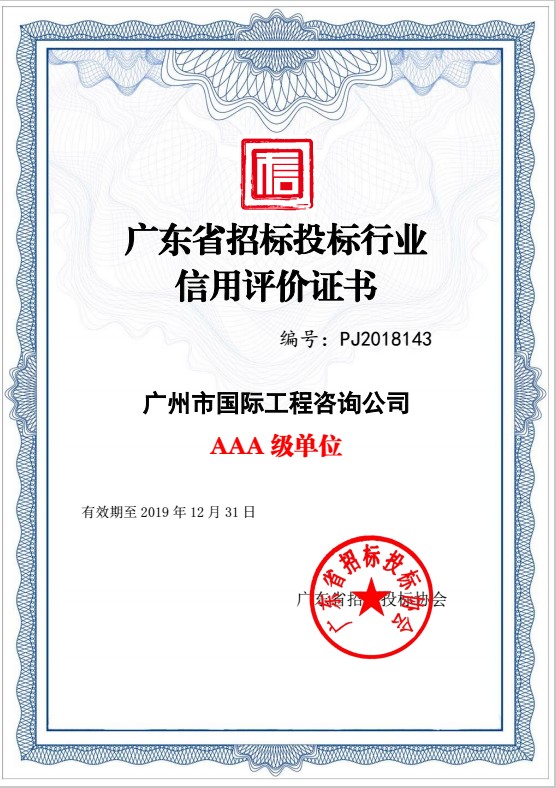 2019廣東省招标投标行業(yè)信用評價AAA級單位
