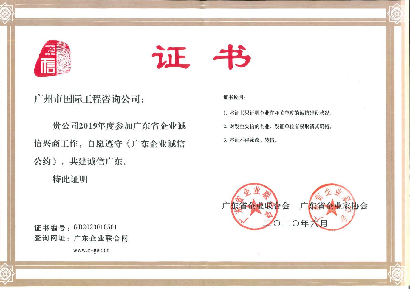 2019年(nián)廣東省企業(yè)誠信公約