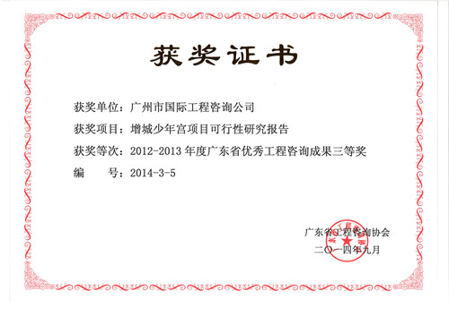 《增城(chéng)少年(nián)宮項目可行性研究報(bào)告》獲2012-2013...