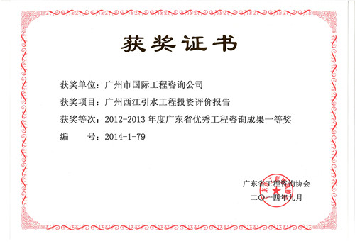 《廣州西(xī)江引水(shuǐ)工(gōng)程投資評價報(bào)告》獲2012-2013...