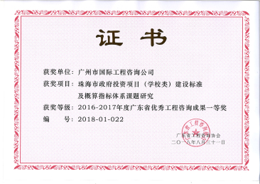 2016-2017年(nián)度廣東省優秀工(gōng)程咨詢成果一(yī)等獎(...