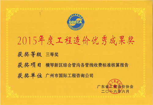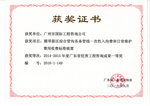 《橫琴新區綜合管溝各管線收費(fèi)标準核算(suàn)報(bào)告》獲...