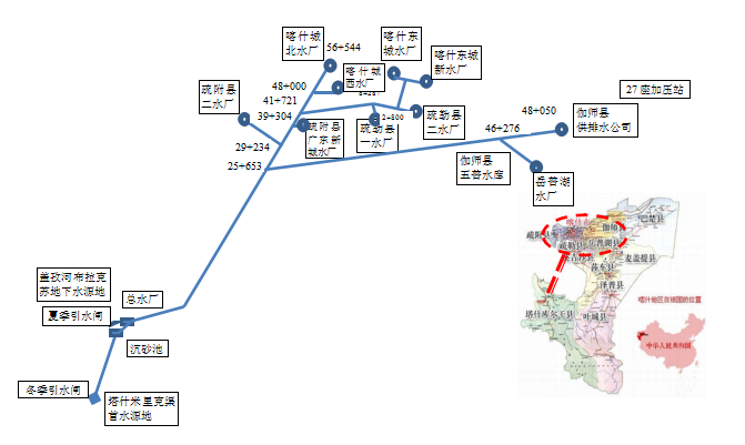 圖3:項目管線和水(shuǐ)廠分布示意圖