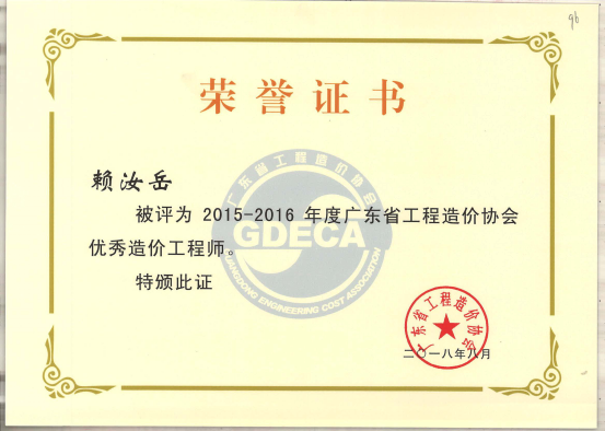 圖5:廣東省優秀造價工(gōng)程師(shī)——賴汝嶽