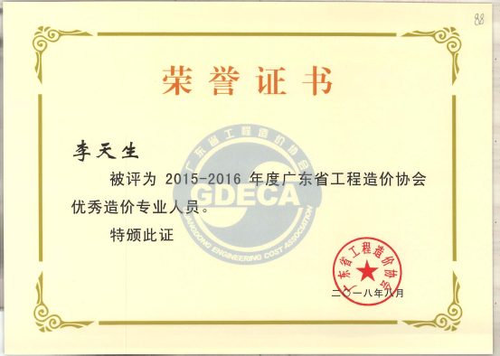 圖7:廣東省優秀造價專業(yè)人員(yuán)——李天生(shēng)