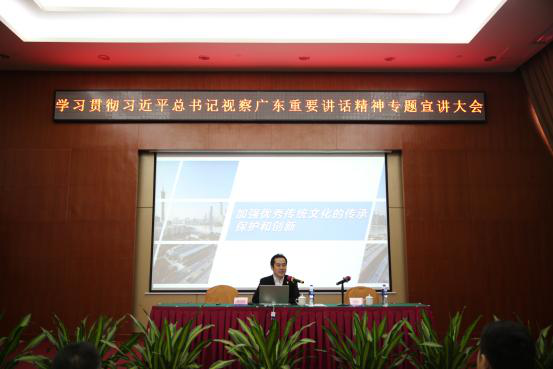 2019年(nián)1月(yuè)28日,廣州市(shì)國(guó)際工(gōng)程咨詢公司召開(kāi)學習貫徹習近平總書記視察廣東重要講話精神專題宣講大會(huì)。會(huì)議邀請了廣州市(shì)委宣傳部副部長(cháng)朱小(xiǎo)燚作主題為(wèi)“加強優秀傳統文化的傳承保護和創新”的專題宣講。