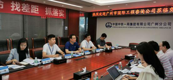 5月(yuè)24日,中國(guó)中鐵一(yī)局集團有限公司廣州分公司(簡稱中鐵一(yī)局)邀請廣州市(shì)國(guó)際工(gōng)程咨詢公司進行座談我司相(xiàng)關業(yè)務部門(mén)同事(shì)前往交流