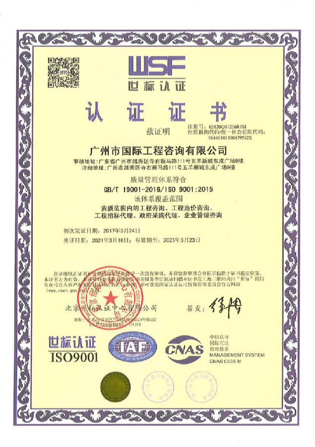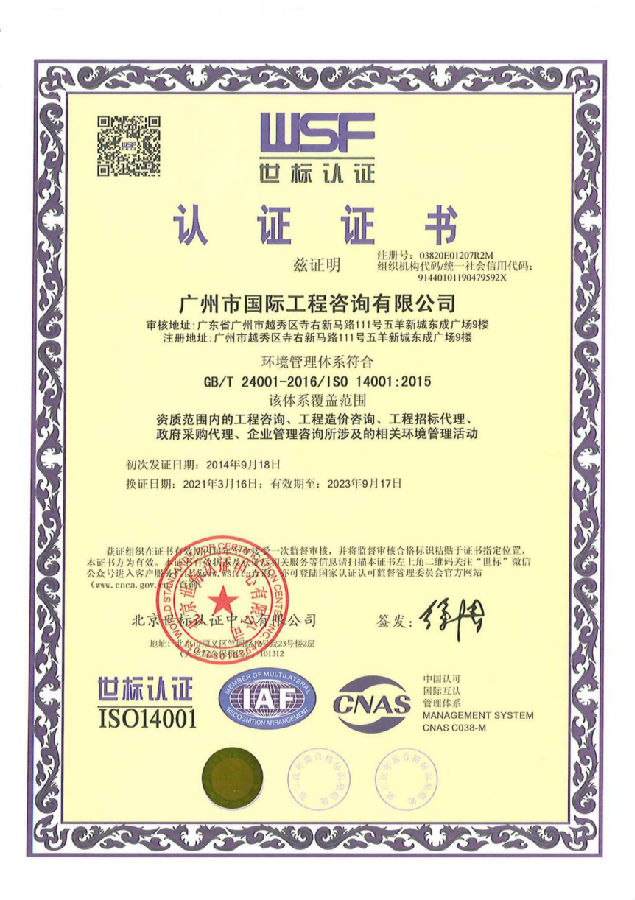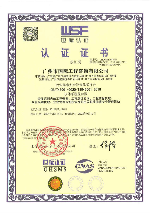 根據質量、環境、職業(yè)健康安全管理體系認證機(jī)構---北(běi)京世标認證中心有限公司的審核計劃書要求,北(běi)京世标認證中心有限公司于3月(yuè)1日至3月(yuè)2日對我司開(kāi)展了質量、環境及職業(yè)健康安全管理體系換證後第一(yī)次監督審核認證工(gōng)作,審核範圍包括工(gōng)程咨詢服務、工(gōng)程招标代理、政府采購代理、企業(yè)管理咨詢服務等内容。廣州助美咨詢有限公司的監督審核認證工(gōng)作于3月(yuè)2日順利完成,并于3月(yuè)下(xià)旬獲得了質量、環境及職業(yè)健康安全管理體系認證證書。