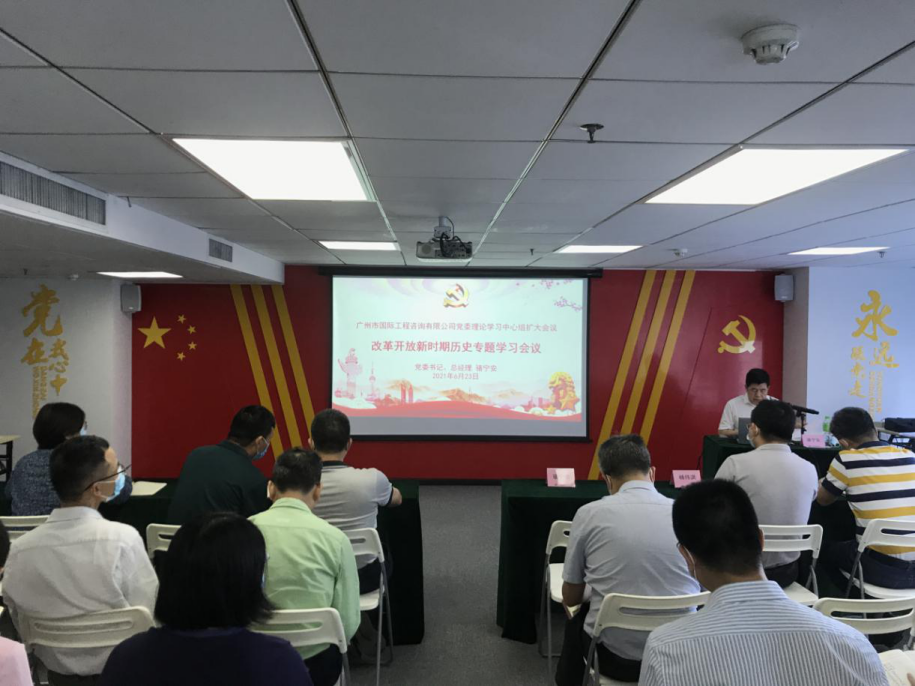 為(wèi)深入推進黨史學習教育,根據公司黨委開(kāi)展黨史學習教育暨慶祝建黨100周年(nián)系列活動工(gōng)作安排,6月(yuè)23日上(shàng)午,廣州助美咨詢有限公司黨委召開(kāi)理論學習中心組擴大會(huì)議開(kāi)展改革開(kāi)放(fàng)新時期曆史專題學習,會(huì)上(shàng)黨委書記、總經理駱甯安同志(zhì)講授《黨的十一(yī)屆三中全會(huì)與偉大曆史轉折》專題黨課,公司全體黨員(yuán)、非黨員(yuán)中層領導幹部、發展對象共48人參加了會(huì)議。