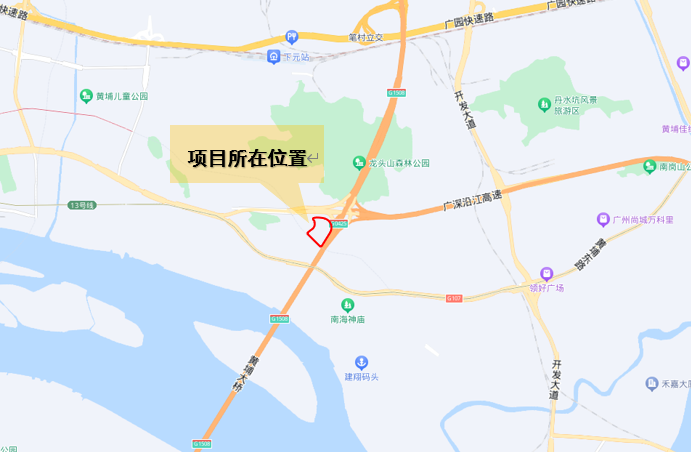 本項目位于廣州市(shì)黃埔區紅(hóng)山街道廣州冶煉廠地塊,廣深沿江高(gāo)速與廣澳高(gāo)速交叉口西(xī)南(nán)處。