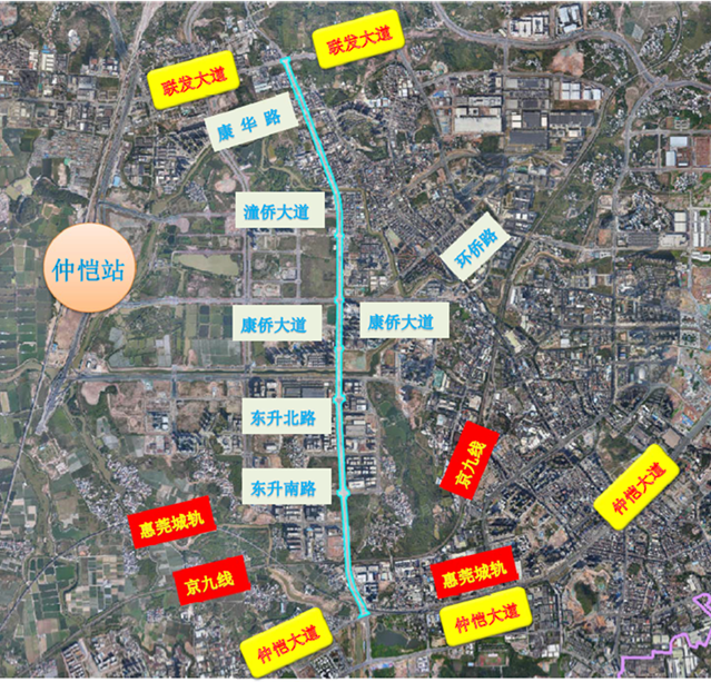 項目位于廣東省惠州市(shì)仲恺高(gāo)新區陳江街道、潼僑鎮,屬于惠州潼湖(hú)生(shēng)态智慧區(國(guó)際合作産業(yè)園、創新與總部經濟區)的路(lù)網組成部分。項目全長(cháng)6.091km,起點與仲恺大道相(xiàng)接,終點與聯發大道相(xiàng)接,路(lù)線呈南(nán)北(běi)走向,規劃紅(hóng)線寬度50m。本次升級改造主要包括在現狀道路(lù)兩側空間條件(jiàn)允許的前提下(xià)對現狀六車道進行加寬改造,并解決道路(lù)沿線排水(shuǐ)不暢、路(lù)基不均勻沉降造成路(lù)面起伏、行車體驗差及路(lù)面破損修複等問題。改造後K0+000~K0+000~K4+540段采用雙向八車道,K4+540~K6+091段仍采用雙向六車道。